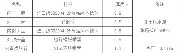 2.2 水箱材料技術(shù)參數(shù)
